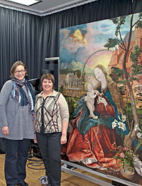 Das Meisterwerk nach aufwendiger »Behandlung«: Die Diplom-Restauratorinnen Annette Kollmann (links) und Ursula Fuhrer freuen sich über die geglückte Restaurierung der Stuppacher Madonna.