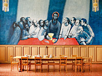 Ein Wandgemälde im Speisesaal des Klosters St. Ottilien zeigt das letzte Abendmahl Jesu mit seinen Jüngern. Immer wenn Christen seinen Auftrag »Tut dies zu meinem Gedächtnis« erfüllen, wird Jesus real präsent. Die Gemeinde vergegenwärtigt sein Kreuzesopfer, das er ein für alle Mal für uns Menschen gegeben hat.